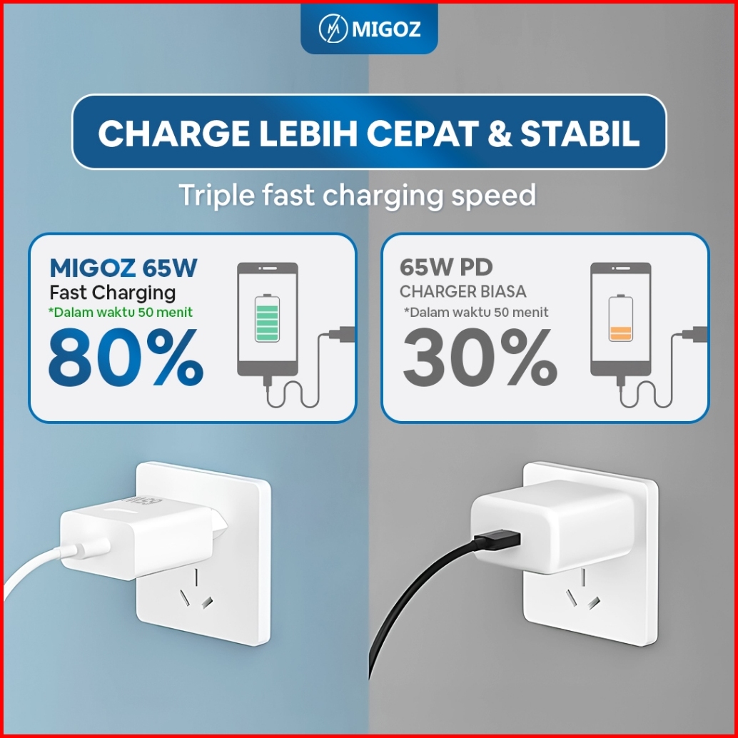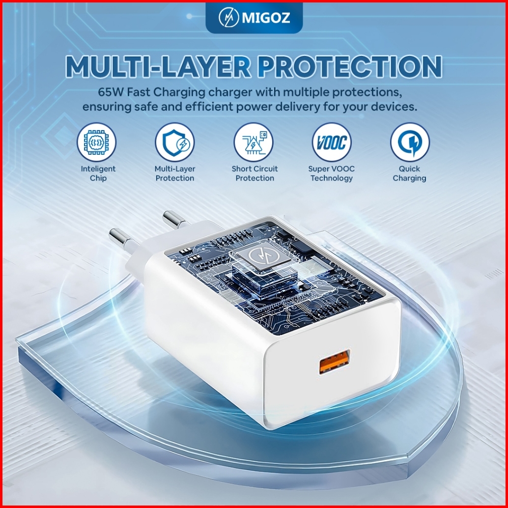 Migoz Charger 65w Fast Charging Micro Usb Type C Untuk Semua Hp Android Support Qc Supervooc