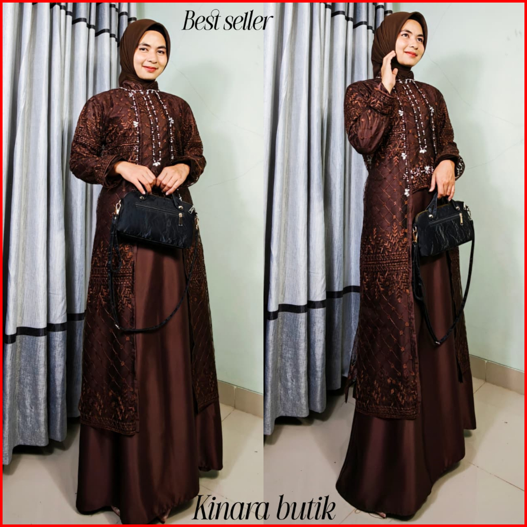 Gamis Pesta Mahogany Viral Tiara Set Dress Satin Velvet Mix Brukat Timbul Premium Terbaru 2025
