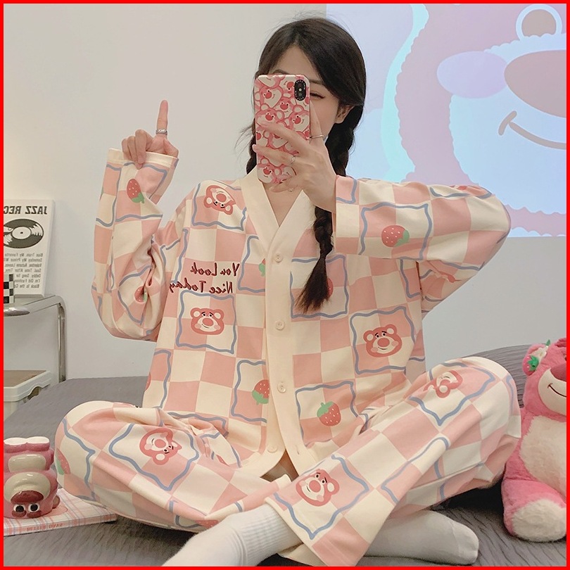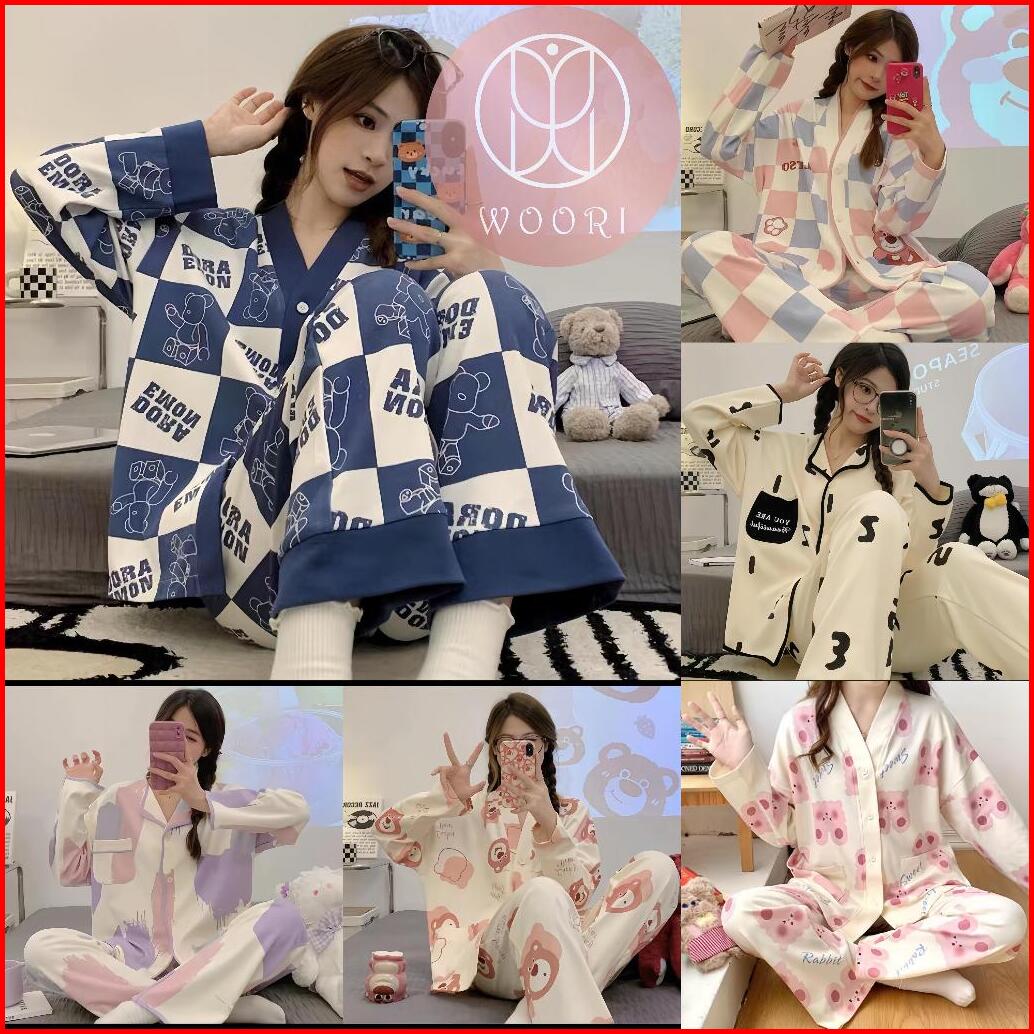 Woori Baju Tidur Wanita Dewasa Piyama Wanita Set Baju Piyama Set Lengan Panjang
