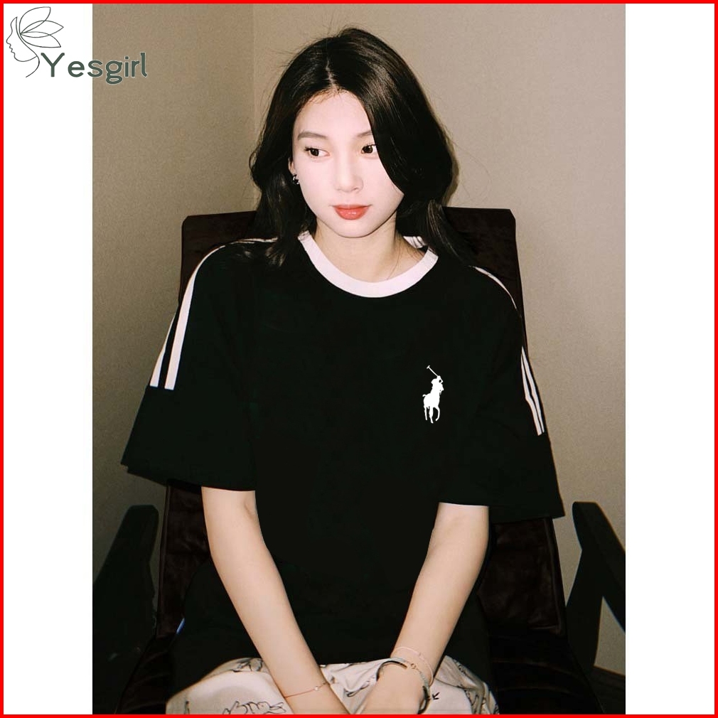 Yesgirl Baju Wanita Putih Black Kaos Premium Lengan Pendek Oversize Kaos Motif Merek Mode Atasan Wanita Kekinian Korean