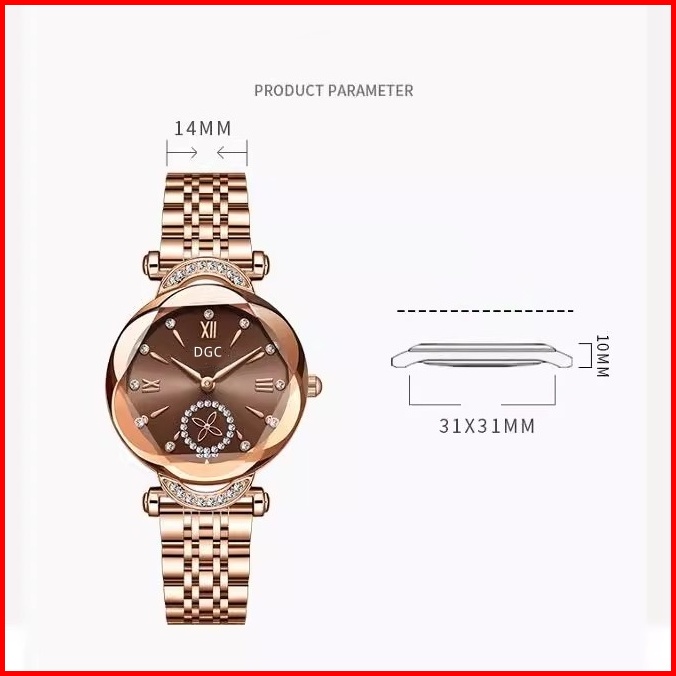 Dgc G166 Jam Tangan Wanita Kotak Rantai Stainless Steel Elegan Kuarsa Business Jam Tangan Cewek Jam Tangan Fashion Wanit