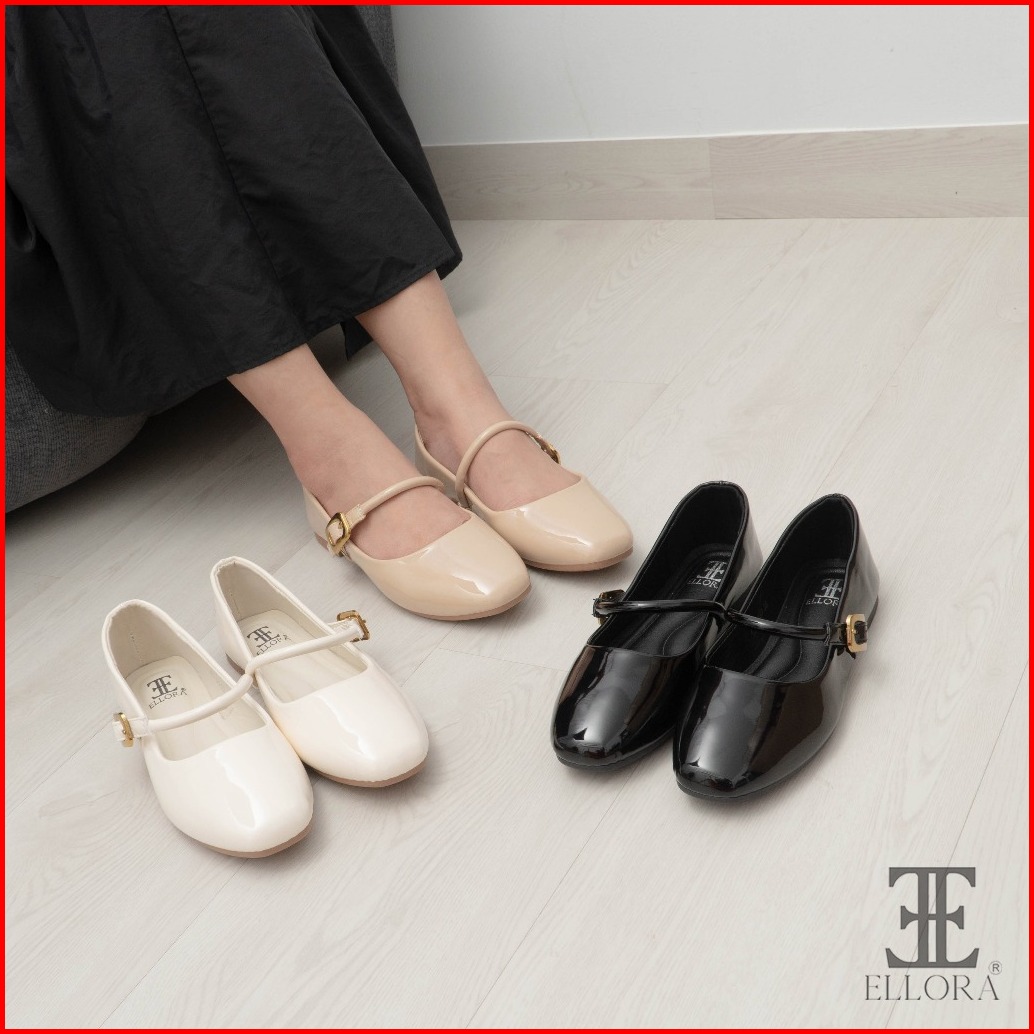 Ellora Eg-2233 Sepatu Flatshoes Wanita Mary Jane Import Glossy