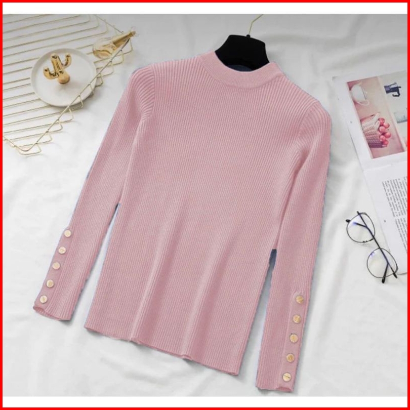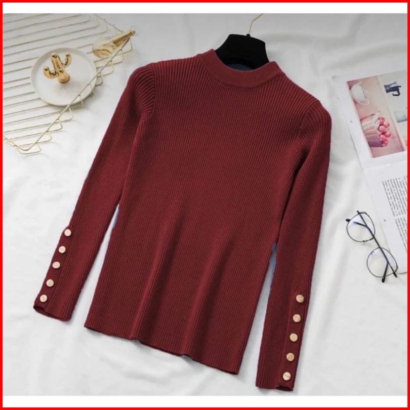 Baju Rajut Inner Manset Wanita Inara Motif Kancing Turtleneck Korea Style Terbaru
