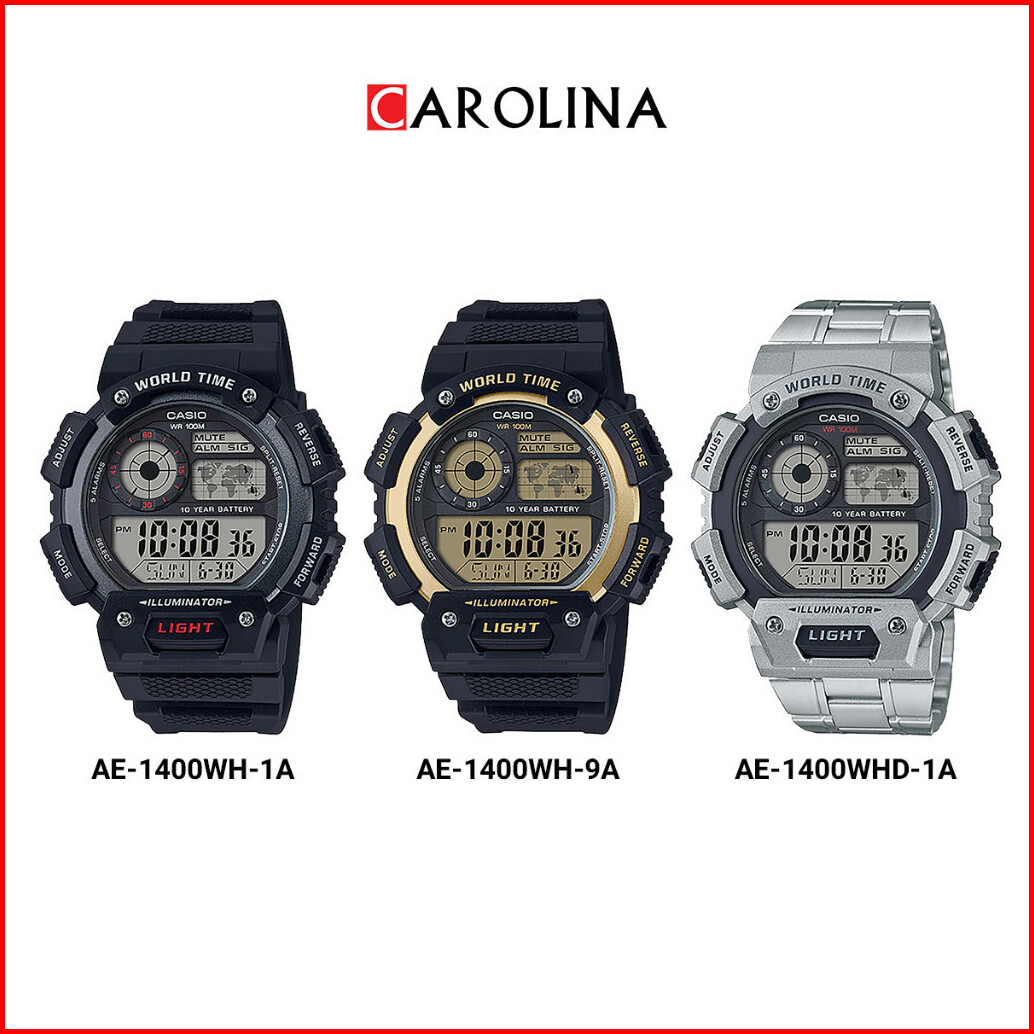 Jam Tangan Pria Casio General Ae-1400wh-1a Digital Dial Black Resin Band