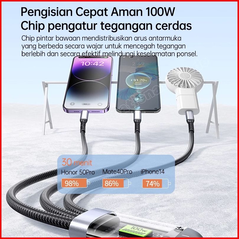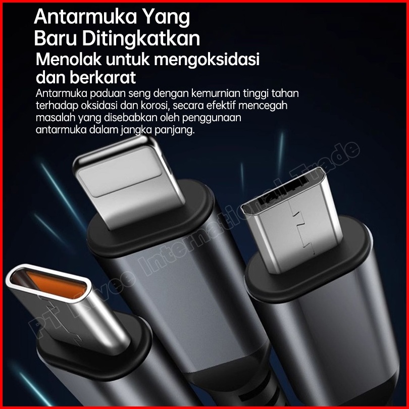 Kivee Kabel Data Iphone 3 In 1 Super Fast Charging 100w Usb To Lightning Micro Type C 1.2m