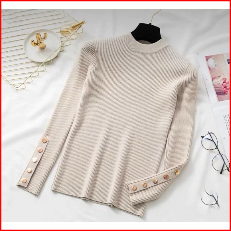 Inara Blouse Rajut Kancing 4 Atasan Baju Wanita Korean Style Press Body