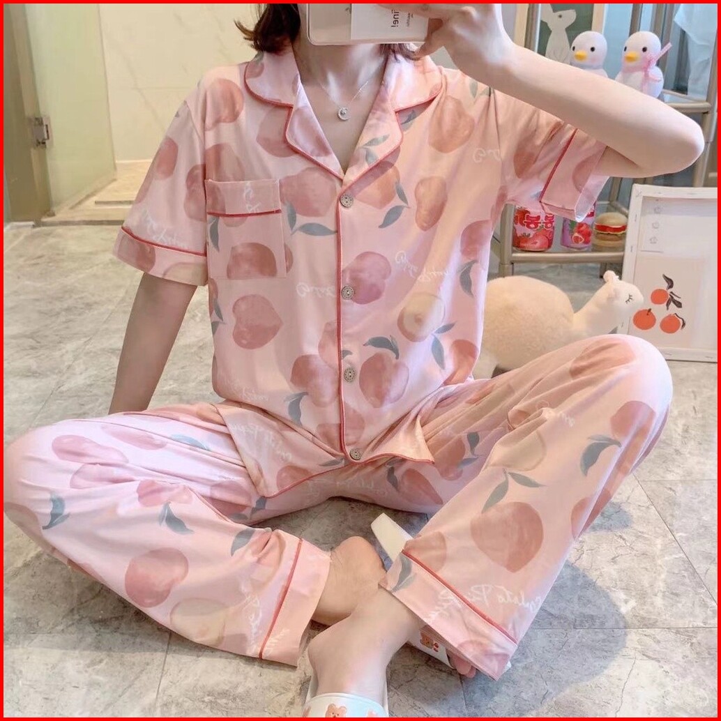 Py004 Baju Tidur Piyama Set Kemeja Cp Lengan Pendek Celana Panjang Import Premium Fit To Xxl
