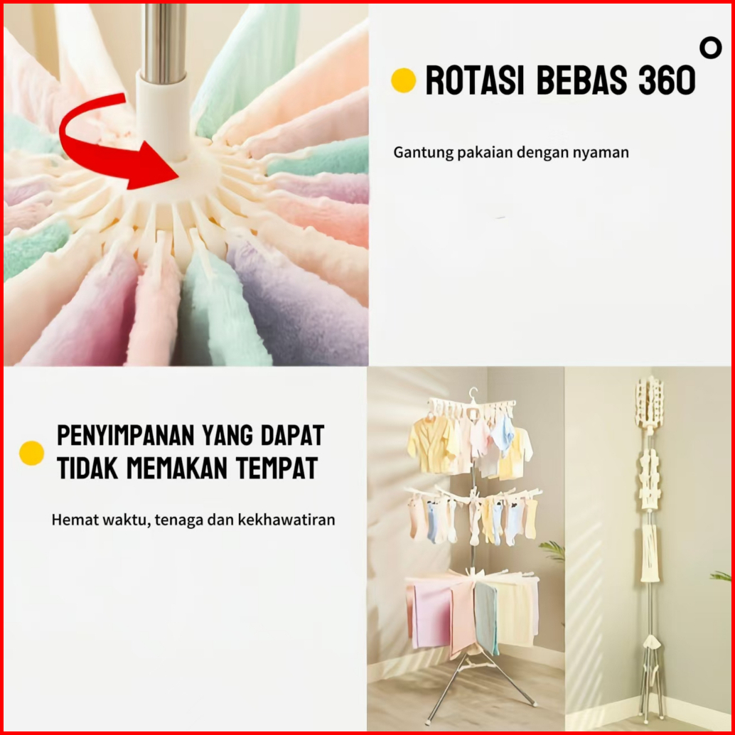 Jemuran Baju Menara 3 Susun Plastik Gantungan Baju Portable Hanger Lipat Pabrik Menjua