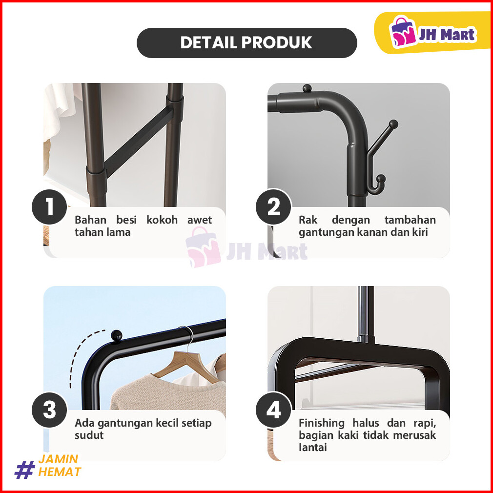 Jhm - Stand Hanger 2 Layer Gantungan Gawangan Baju Rak Jemur Pakaian Multifungsi