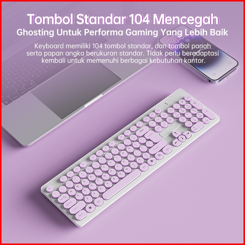 Kivee Keyboard Wireless Mechanical Gaming 104 Keys 2.4ghz Lucu Purple Portable