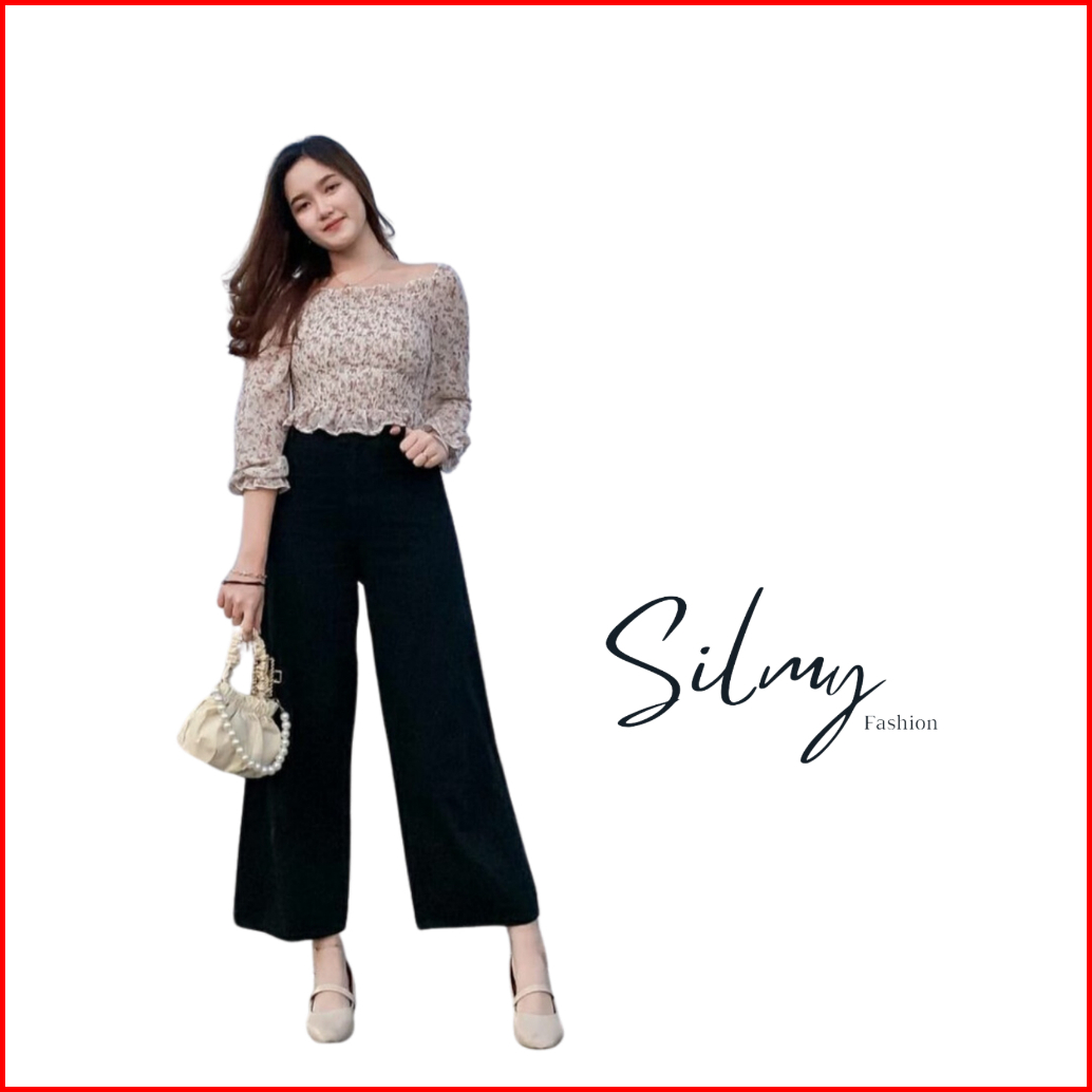 Silmy - Celana Wanita Highwaist Kulot Jeans Wanita Loose