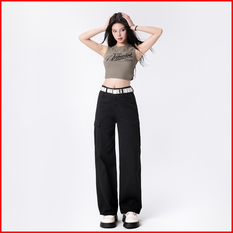 Uni And Glow Jeans Cutbray Highwaist Wanita Stretch Import- Warna Hitam Putih Coklat Biru Salju-s-xxxl