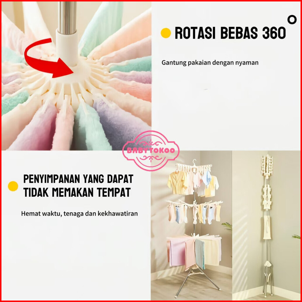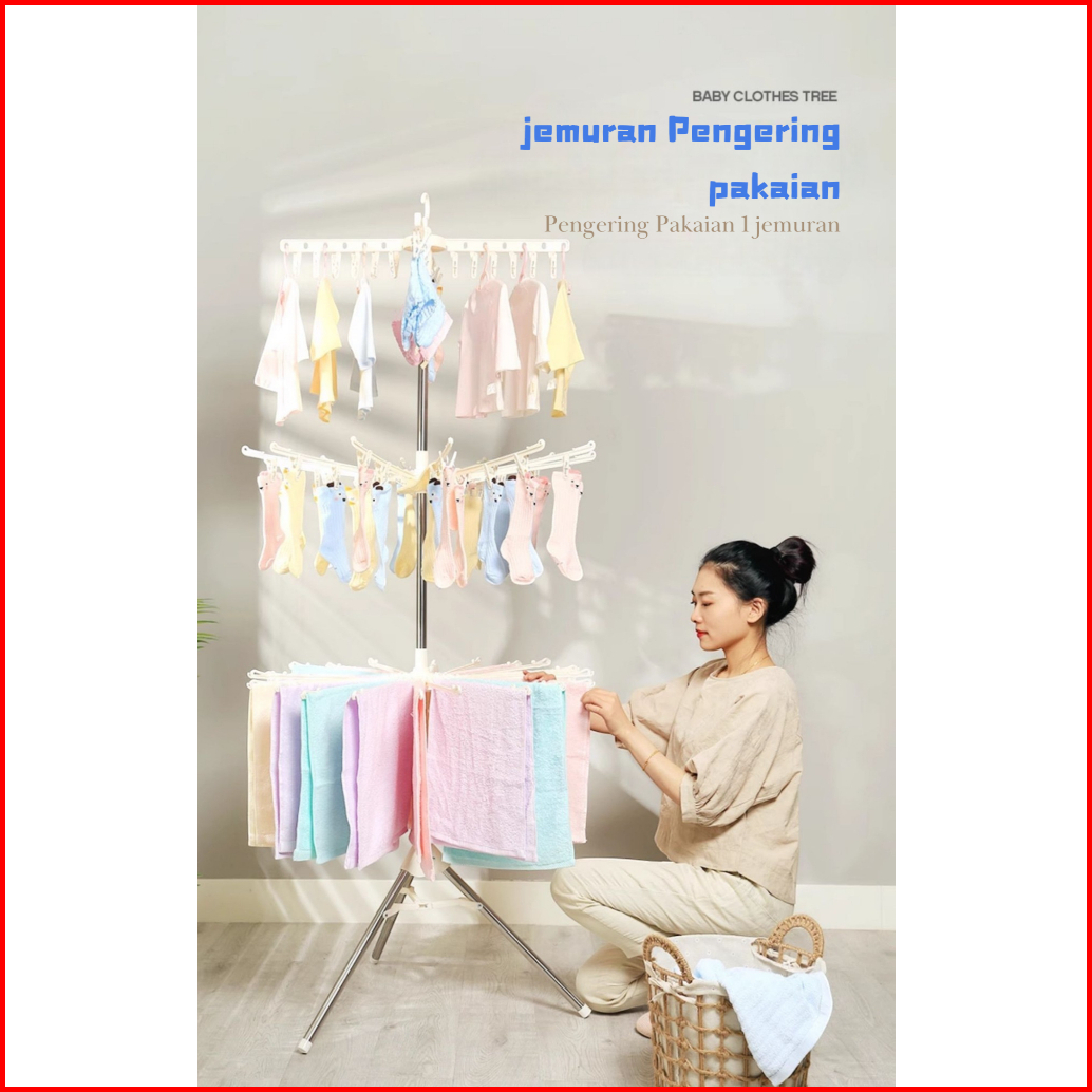Jemuran Baju Bayi Menara Lipat 3 Tingkat Stainless Gantungan Hanger Pakaian 360 Multifungsi
