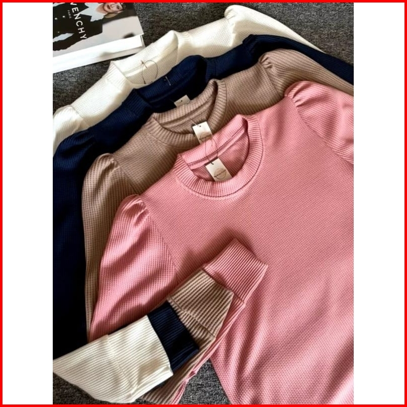 Kaos Puffy Shoulder Top Waffle Lengan Balon Radiva