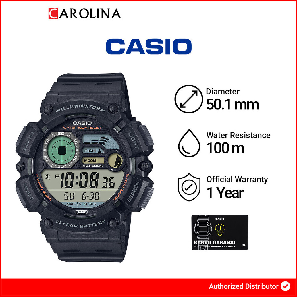 Jam Tangan Pria Casio General Ws-1500h-1a Illuminator Digital Dial Black Resin Band