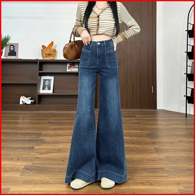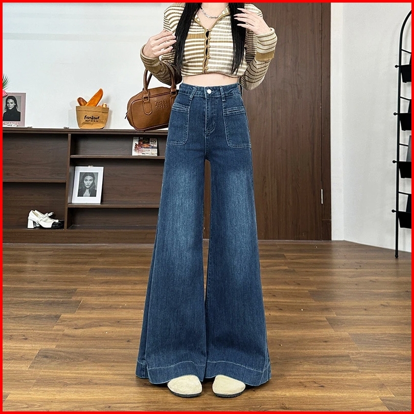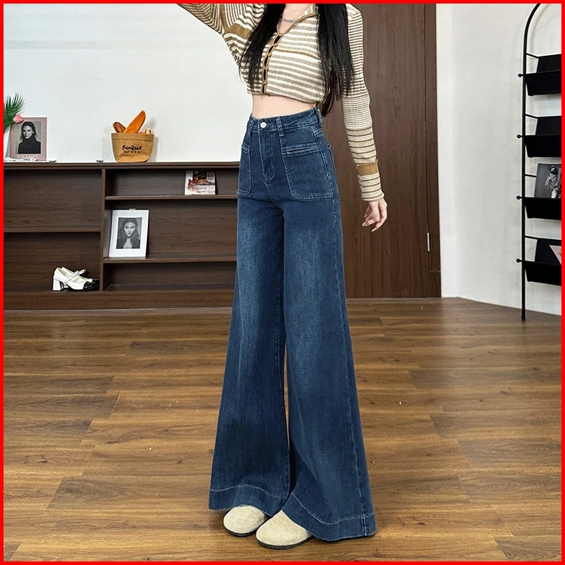 Real Pict Biru Dark Permium High Waist Baggy Jeans Wanita Wide Leg Oversize Loose Style Fashion Pants