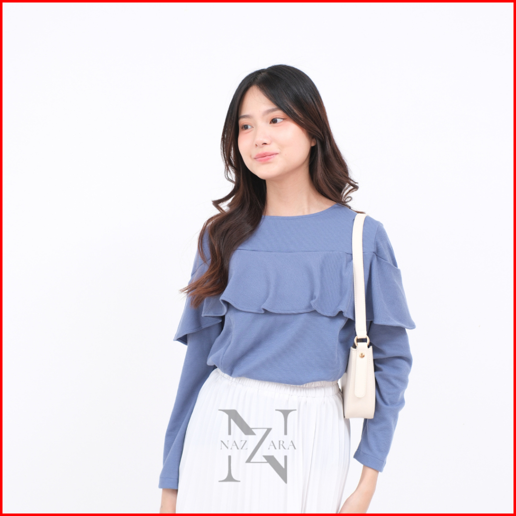 Nazzara - Maura Top Atasan Wanita Terbaru Bahan Knit Blouse Ruffle Korean Style
