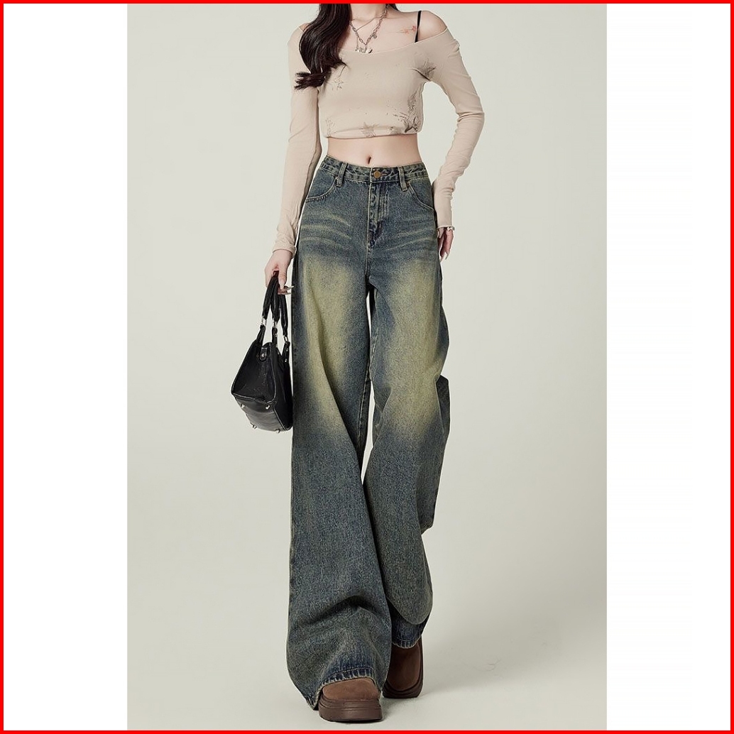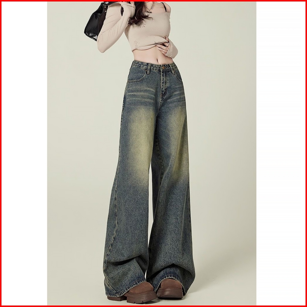 Keygirl Retro Kuot Highwaist Celana Panjang Wanita Baggy Wide Leg Jeans Premium