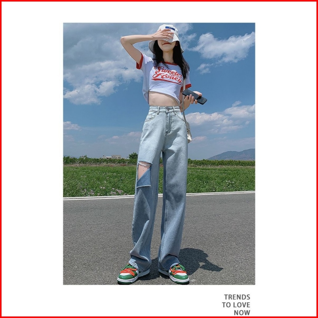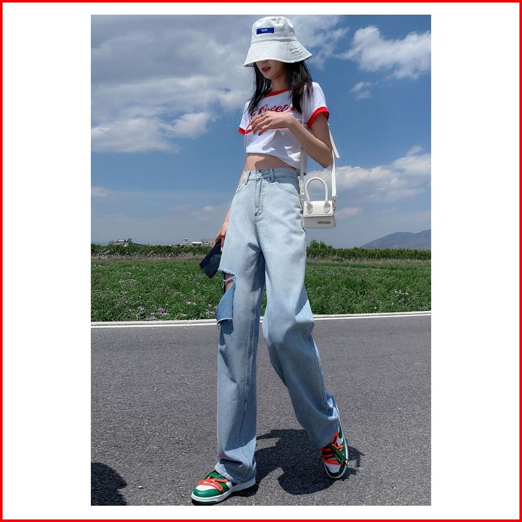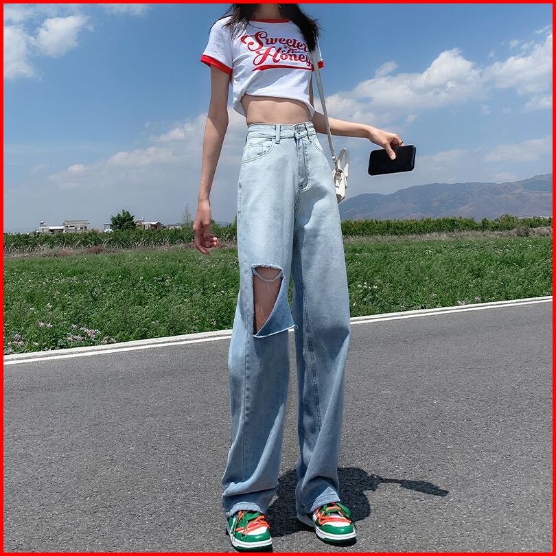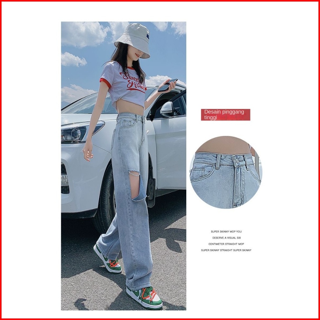 Uni And Glow Celana Jeans Wanita High-waist Sobek Berwarna Biru Gradien Biru Gradien