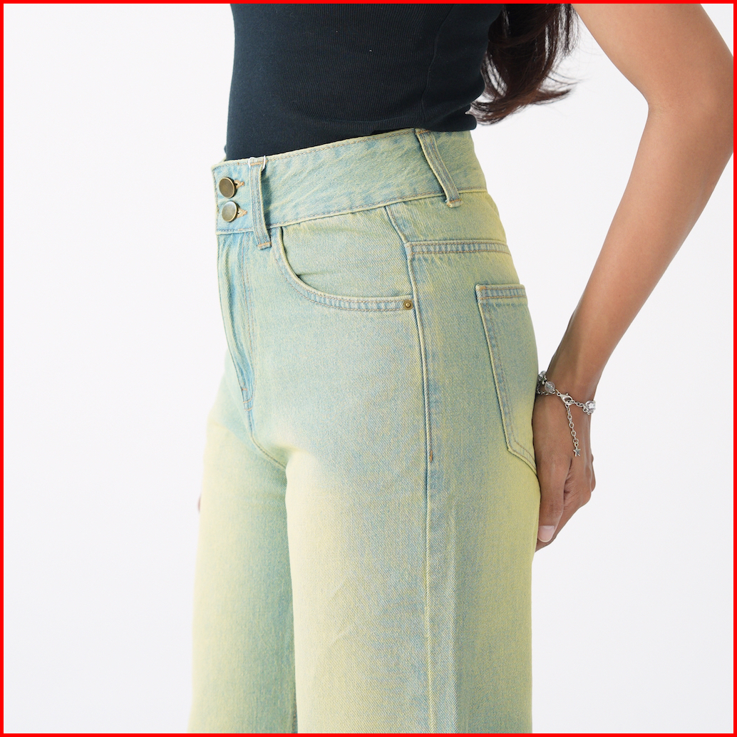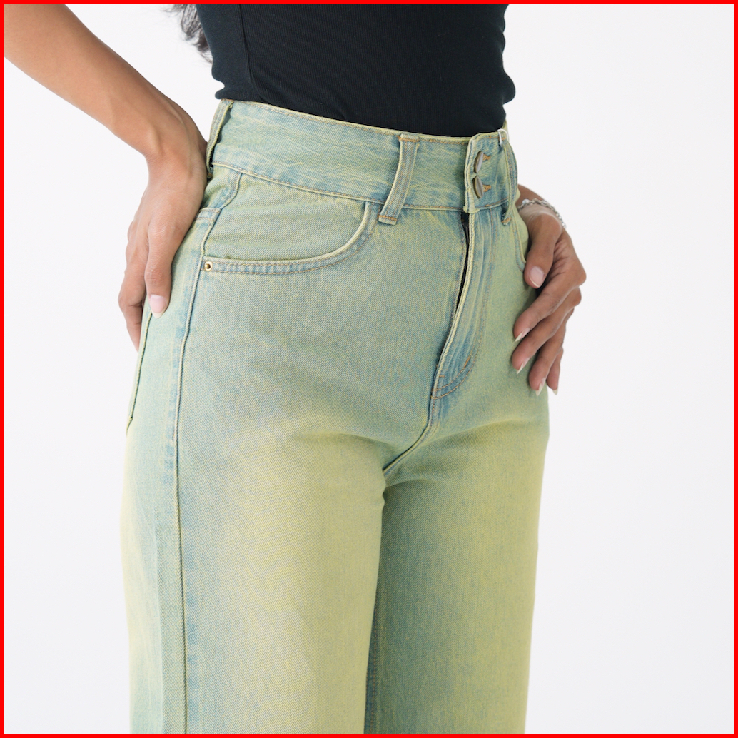 Adorela - Wide Leg Jeans 8835 - Highwaist Celana Jeans Longgar Wanita Blue Green