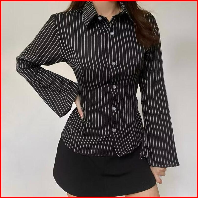 Julia Magnet Top Stripe Shirt Kemeja Fita Body Wanita Korean Style Office Shirt