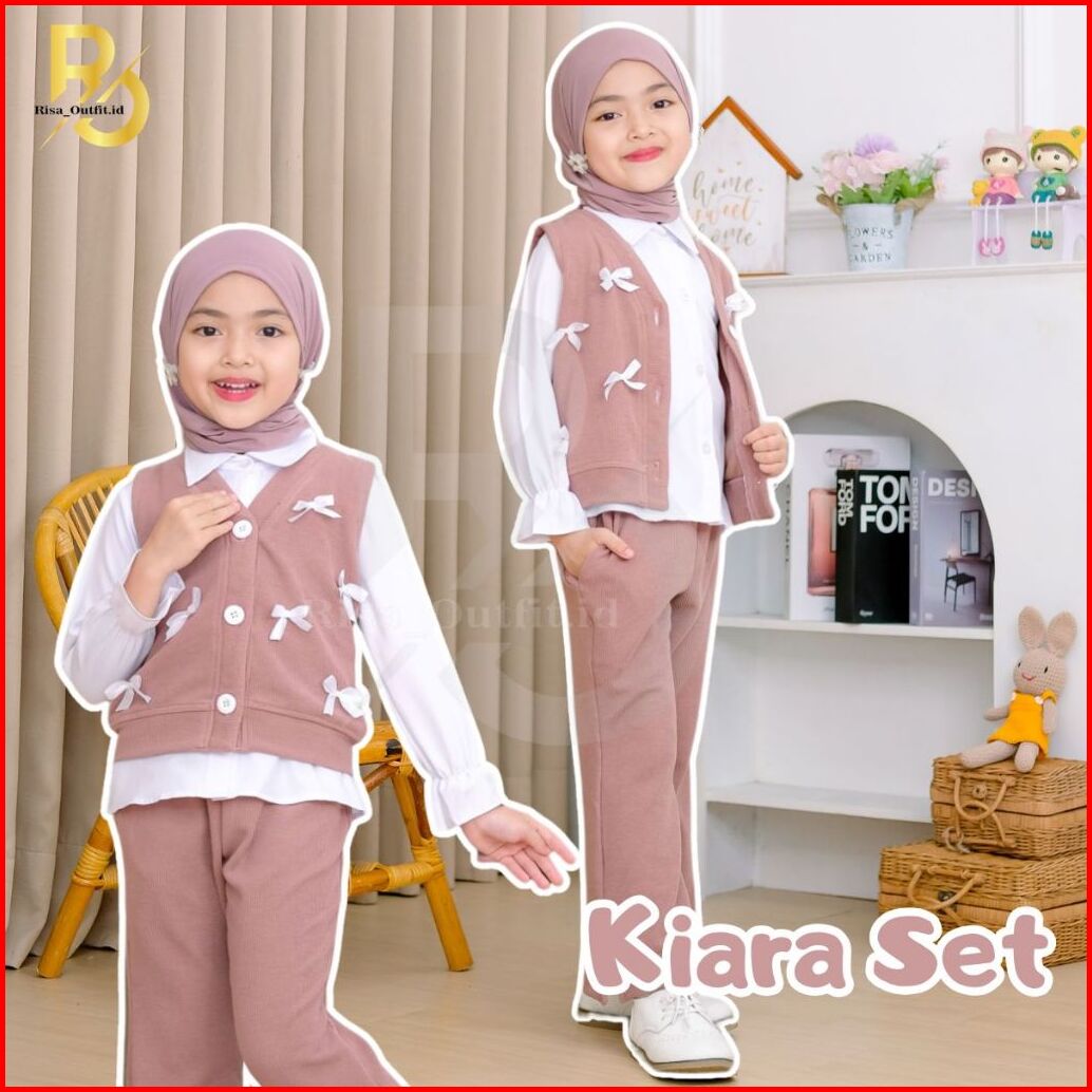Kiara Set Kids 3in1 Setelan Anak Perempuan 2-9 Tahun Ribbon Knitt One Set Baju Setelan Kemeja