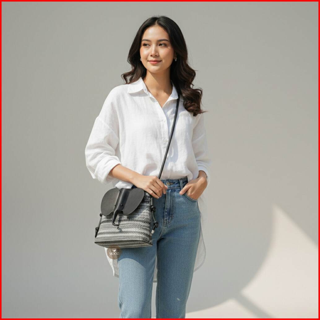 Moco - Raina Bag Fashion Tas Sling Bag Wanita Tas Selempang Bentuk Gajah Motif Rajut Tali Adjustable C10