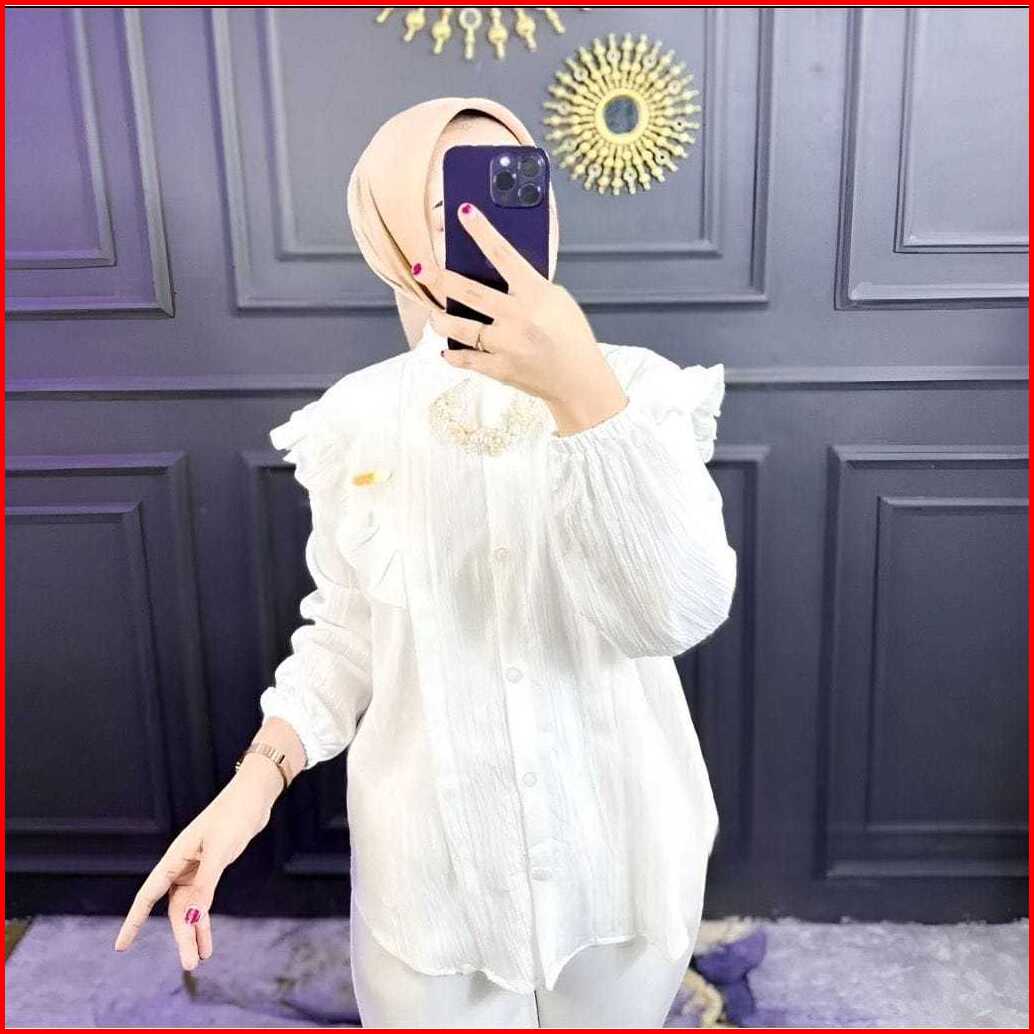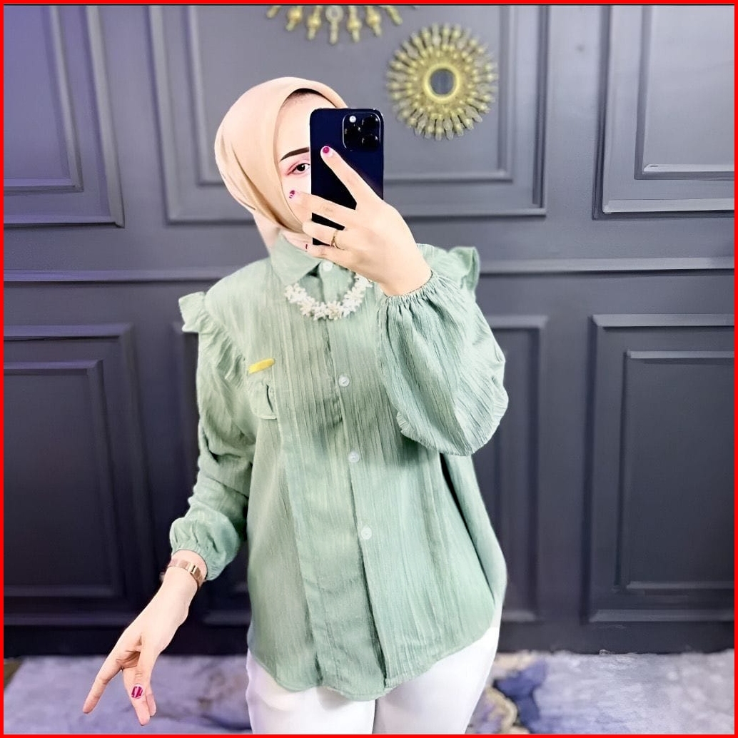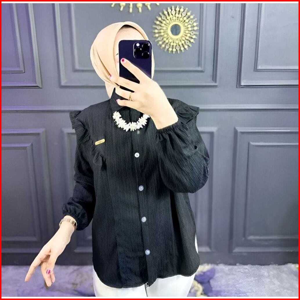 Blouse Wanita Rempel Bahan Lady Crush Kancing Aktif