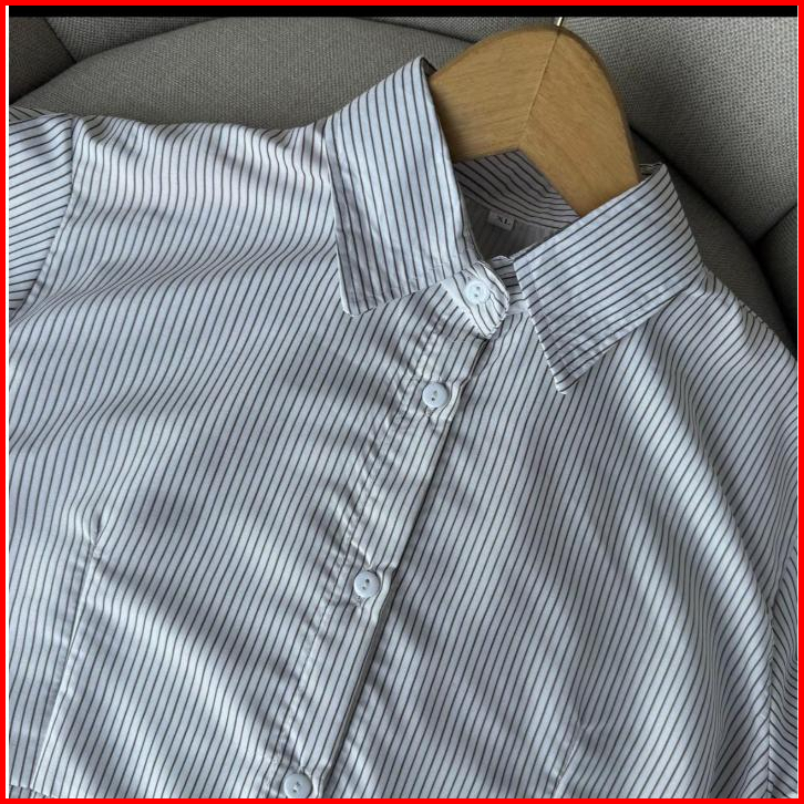Kemeja Strip Rempel Fitted Polos Kemeja Wanita Longsleeve Atasan Luna Stripe Cewek Korea Slim Fit