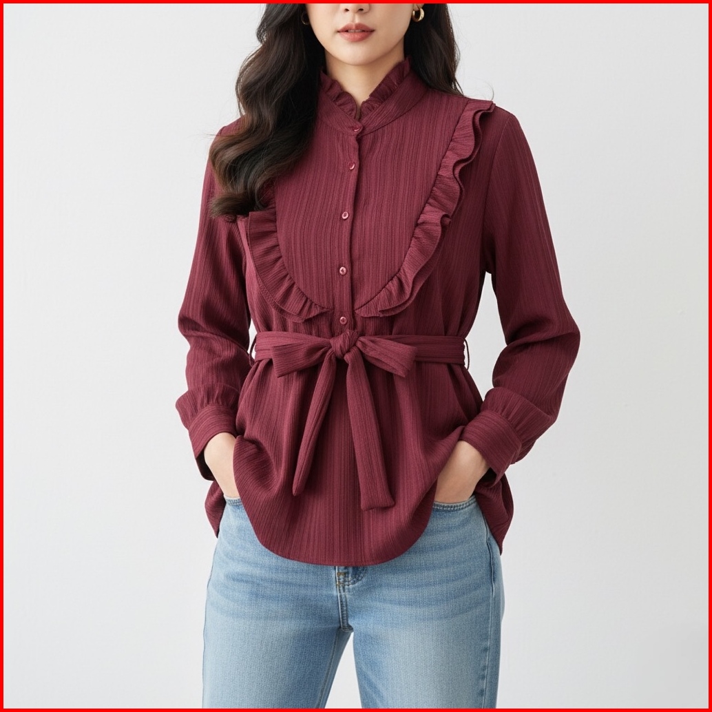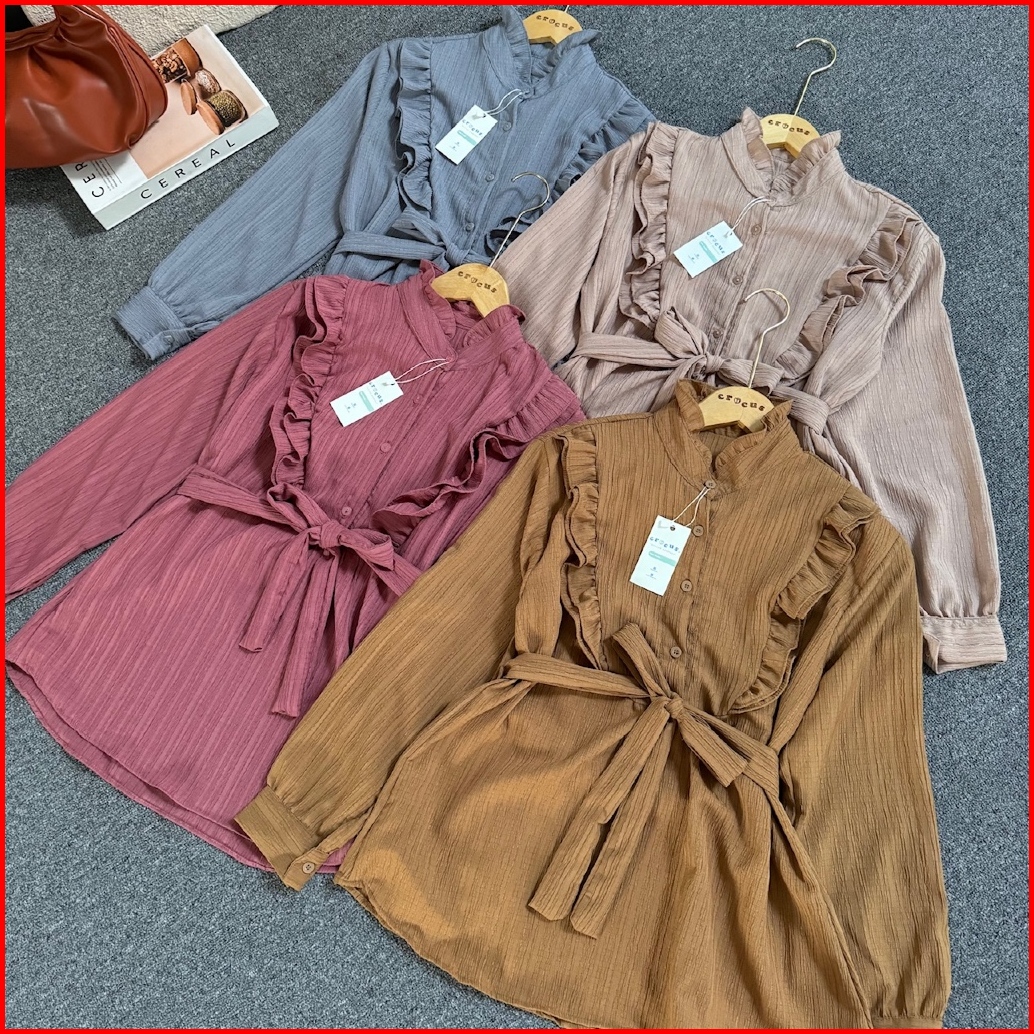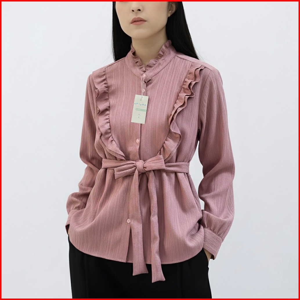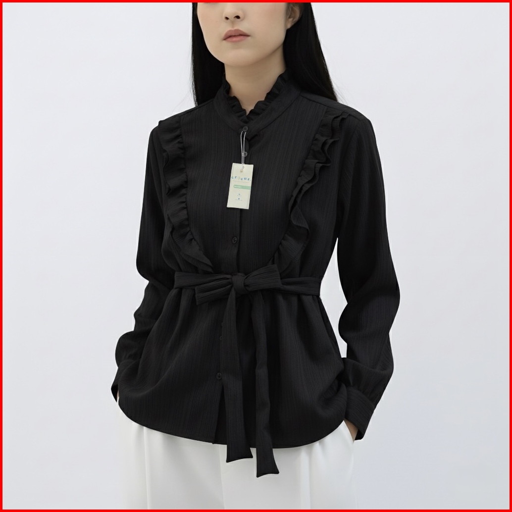 Yumira Blouse - Kemeja Ruffle Lady Crush - Top Shirt Atasan Wanita Rempel Tali