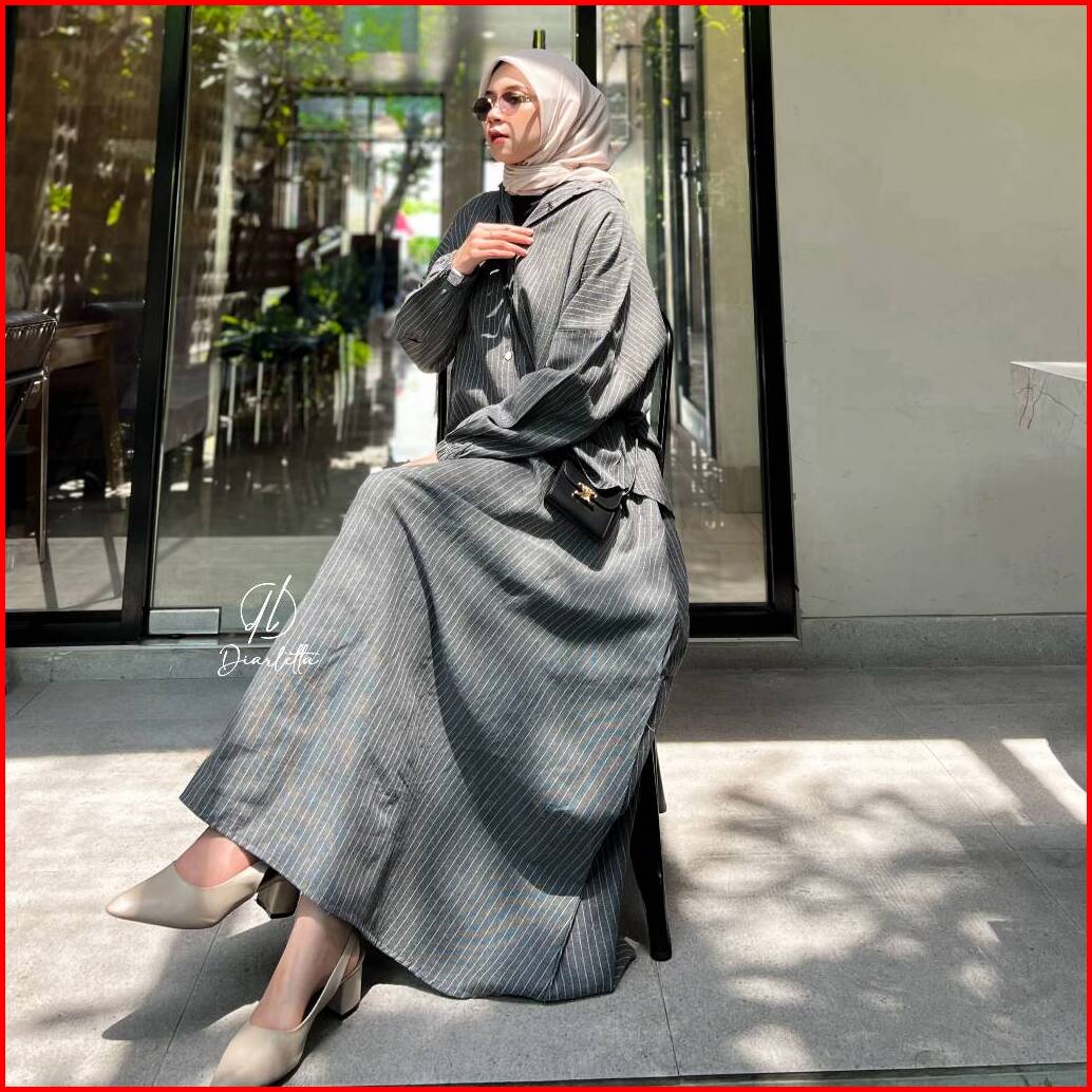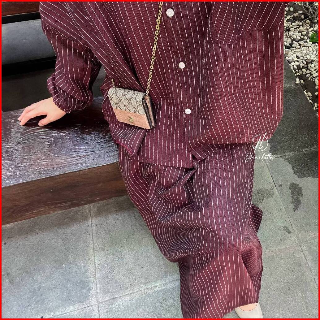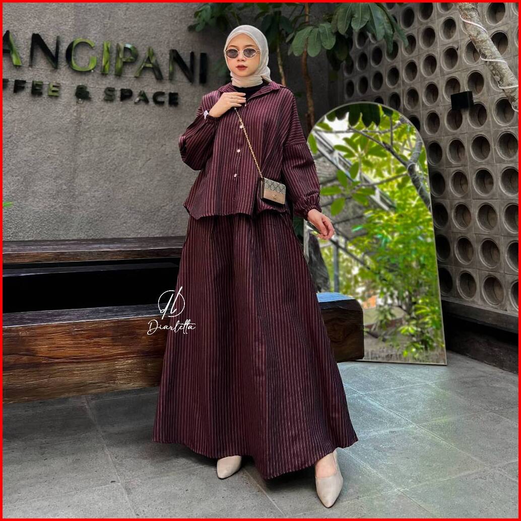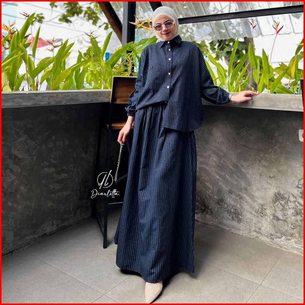 Mirae Set Rok Stripe Linen Semiwool Stripe One Set Rok Umbrella By Diarletta