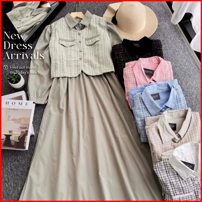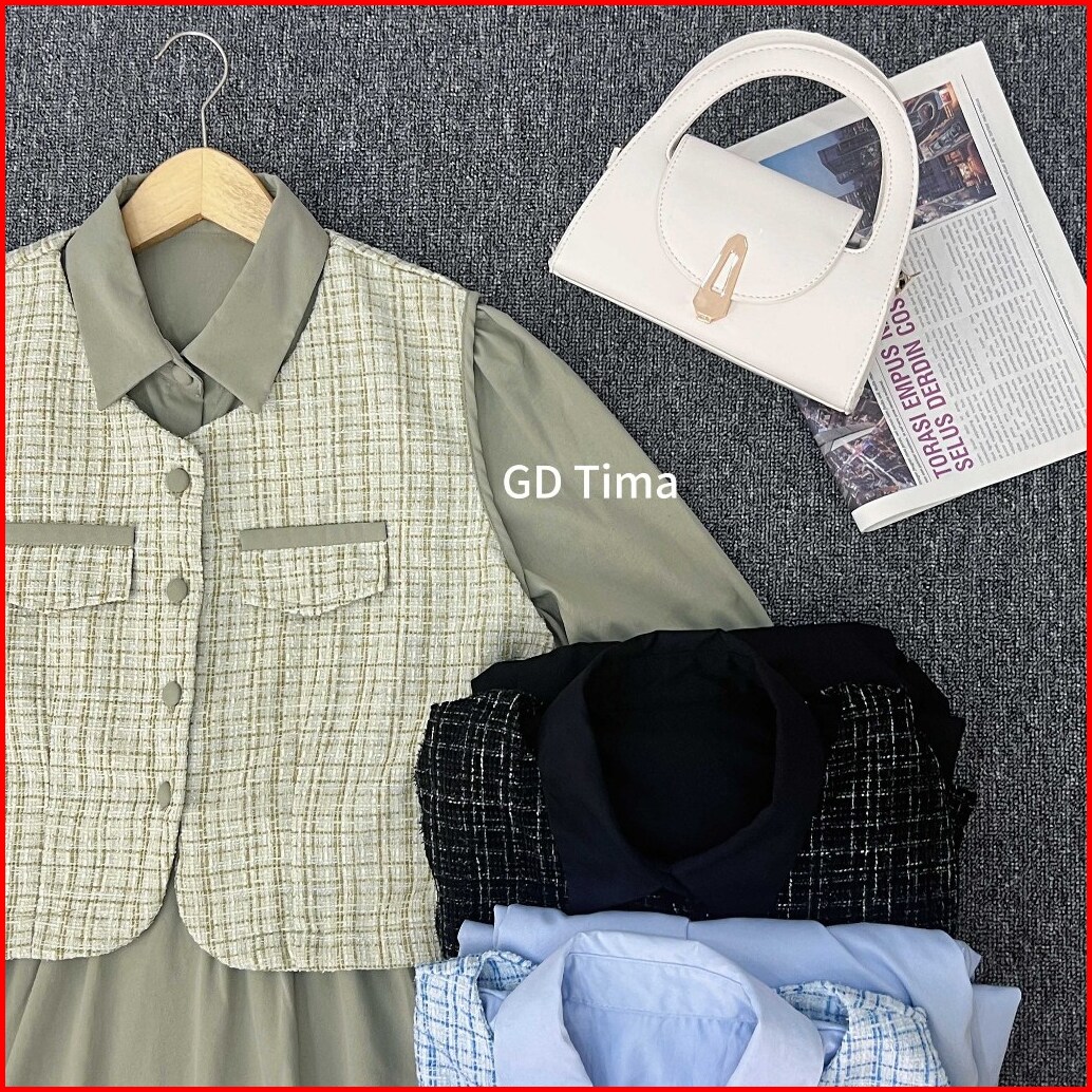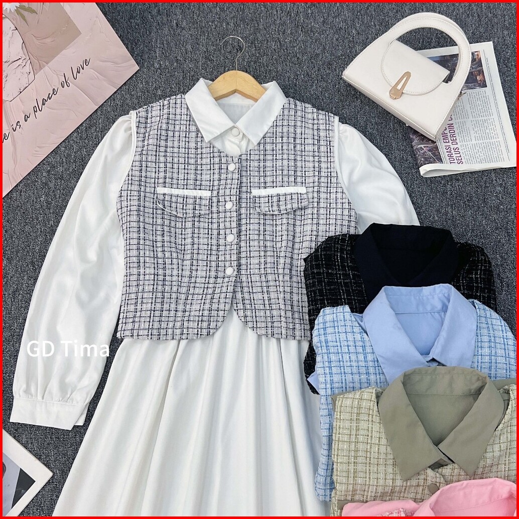 Gdtima Setelan Wanita Kekinian Rompi Lengang Panjang Elegant Dress Baju Lebaran 2025