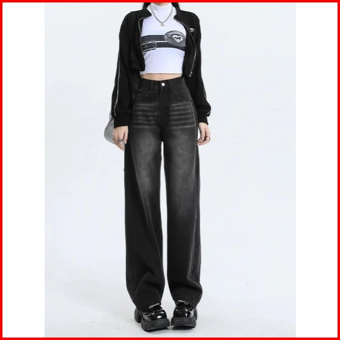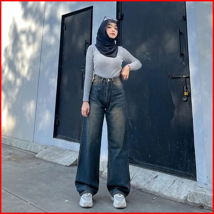 Olise - Highwaist Baggy Jeans Oversize Retro Wanita Kekinian - Celana Baggy Jeans Gombrong