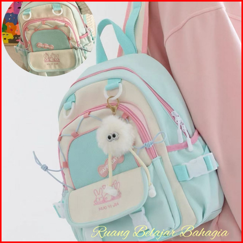 Ruang Belajar Bahagia Ransel Travel Wanita 2025 Ransel Kanvas Baru Ransel Pelajar Sekolah Menengah Ringan Travel Wanita