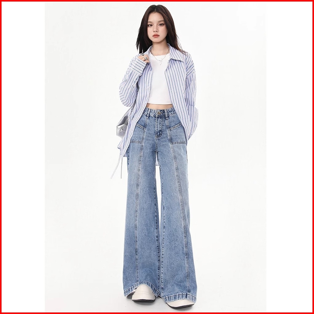 Cutbray Jeans Highwaist Celana Kulot Jeans Korean Style Fashion Loose Biru Pants Premium