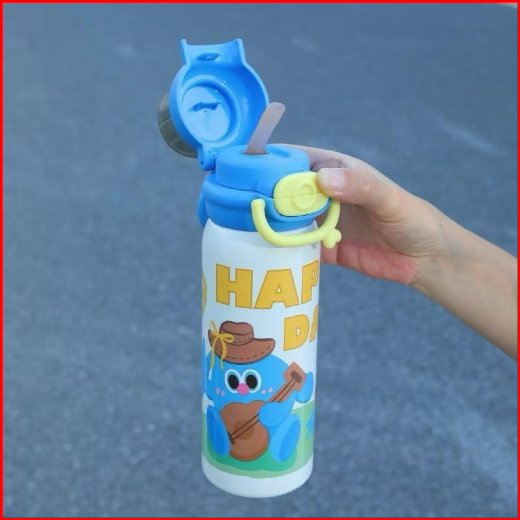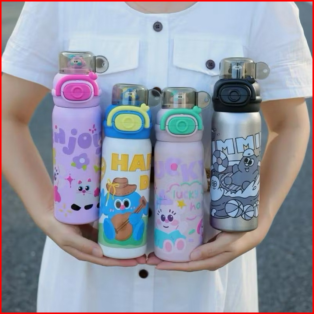 Tumbler Stainless Anak Enjoy Happy Day 600ml Sus 316 Food Grade 1 Tutup 3 Fungsi Cara Minum Gelas Minum Laktam