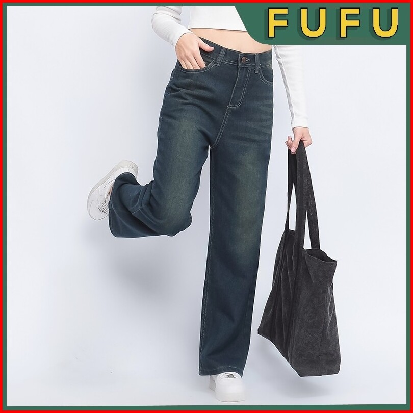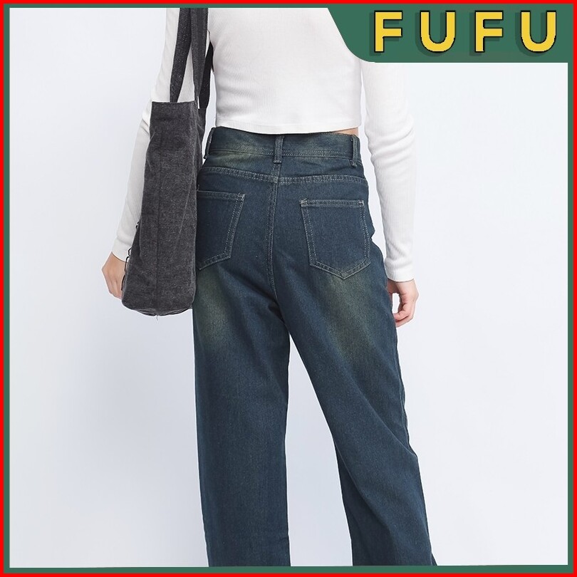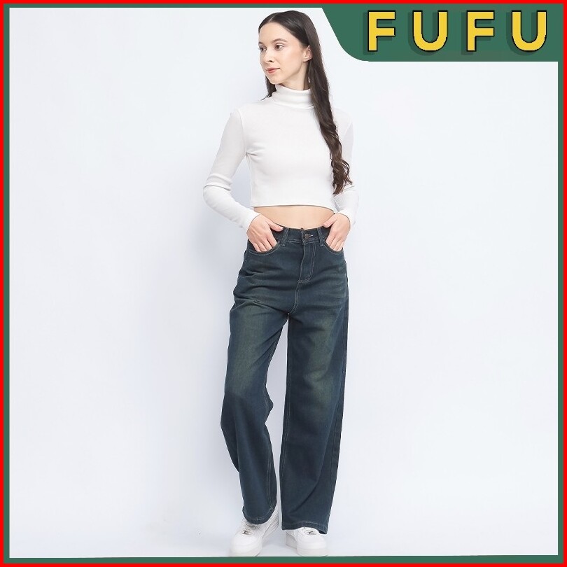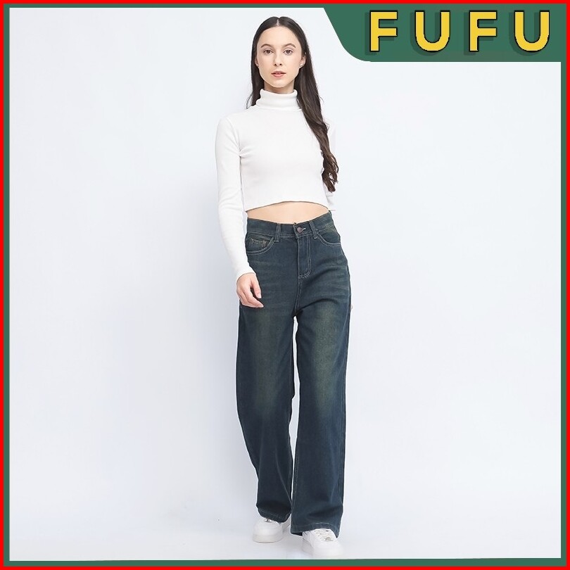 Fufu Celana Jeans Wanita Baggy Jeans Celana Kulot Denim Vintage Highwaist Jeans Celana Non Stretch Celana Panjang Wanita
