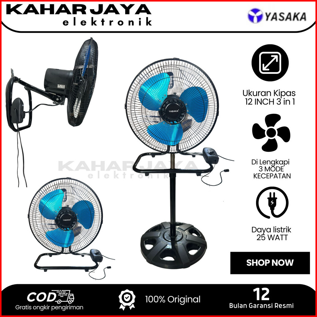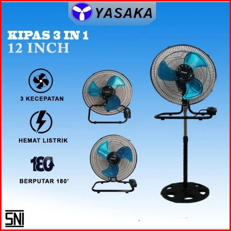 Yasaka 3 In 1 Stand Fan Wall Fan Desk Fan Kipas Tornado Ysk-1218 12 Inch
