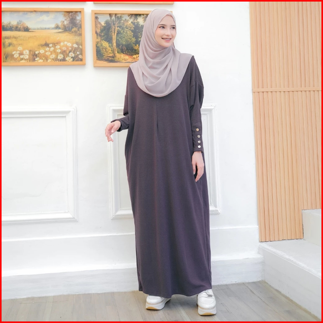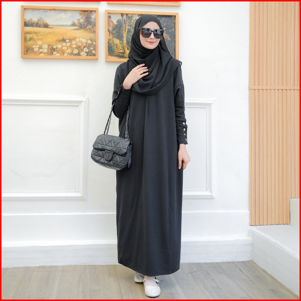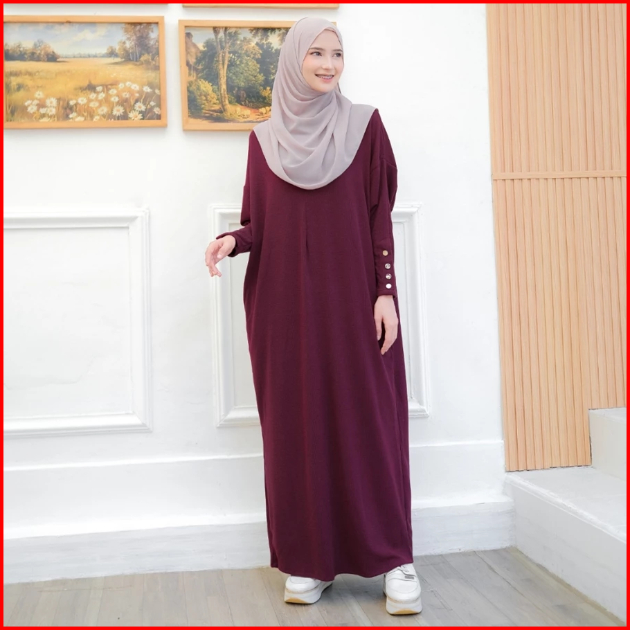 Fashiola Dress Abaya Batwing Button Knit Premium Gamis Model Terbaru Super Tebal Busui Polos Basic