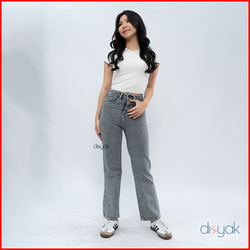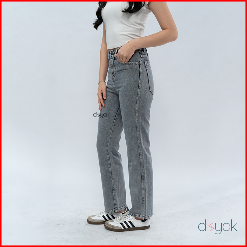 Disyak - Highwaist Loose Jeans Boyfriend Standar Snow Grey 102-202