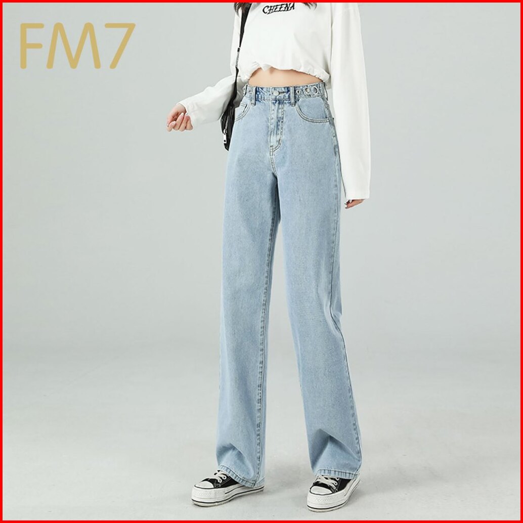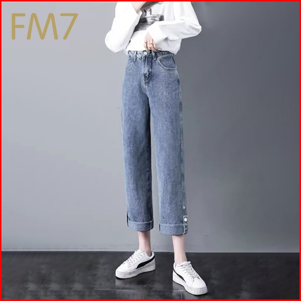 Fm7 L31 Straight Celana Highwaist Wanita Loose Celana Jeans Wanita Korea - Biru