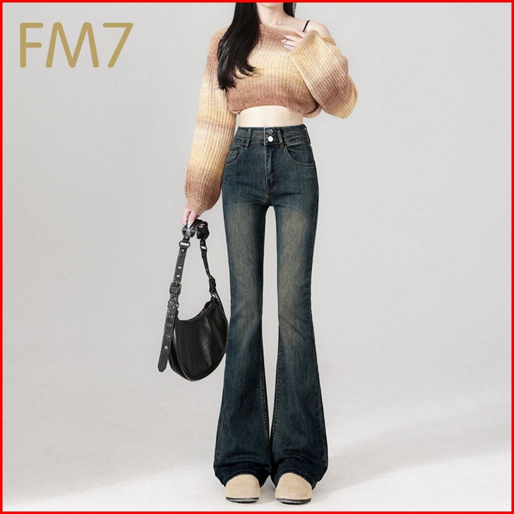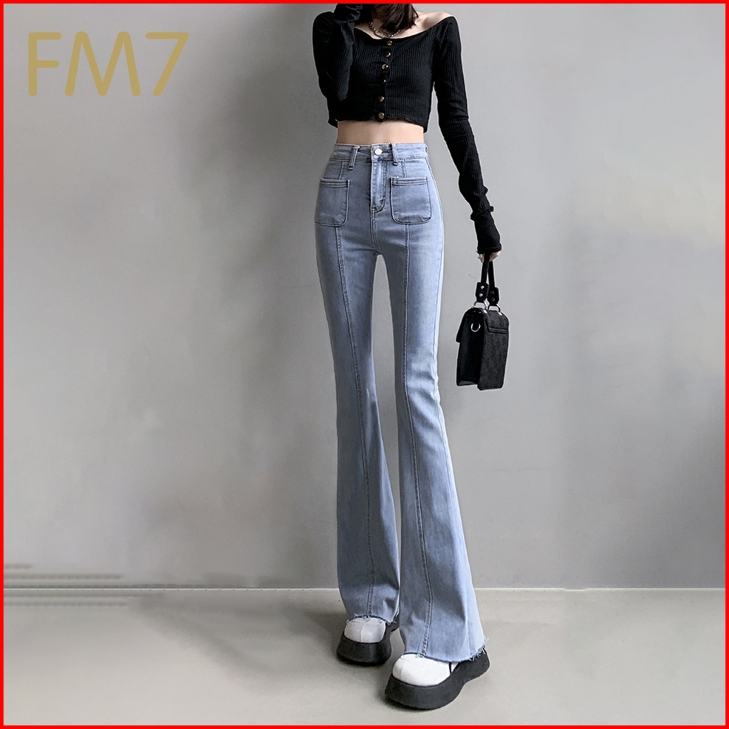 Fm7 L137 Korean Style Skinny Stretch Flare Celana Jeans High Waist Wanita - Biru