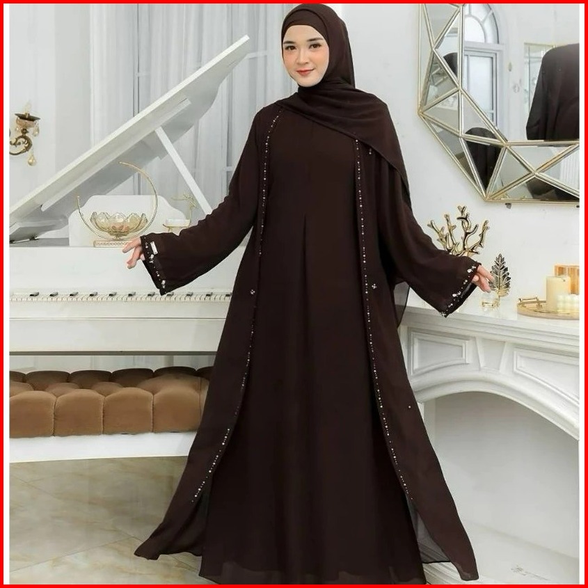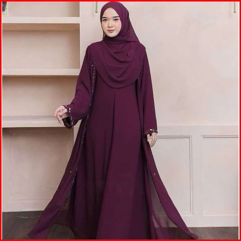 Mahreen-abaya Wanita Muslimah Bahan Ceruty Babbydoll Mix Payet Mutiara Cantik Mewah Premium Elegan
