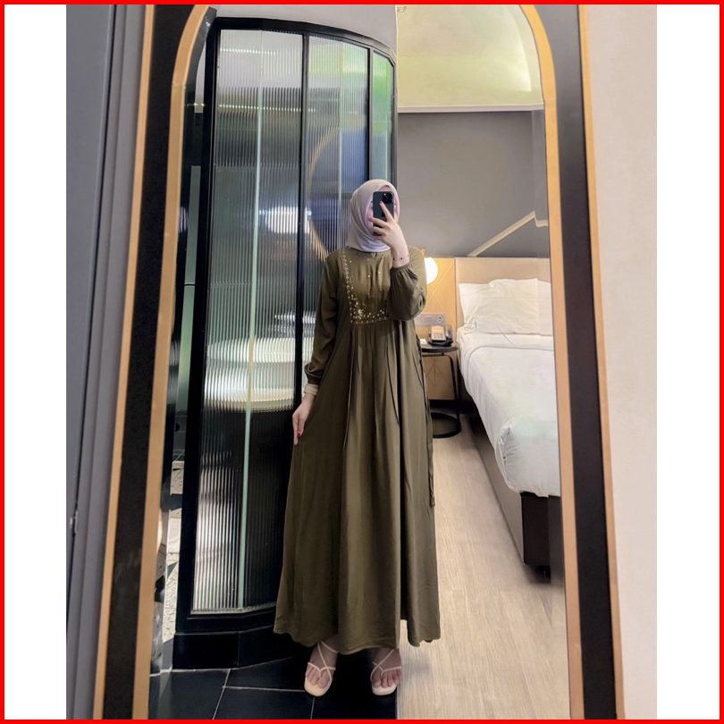 Mecca Dres Gamis Lebaran Borrdir Rayon Twill Tali Samping Premium Gamis Hari Raya Abaya Premium