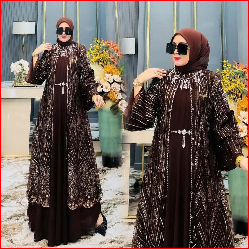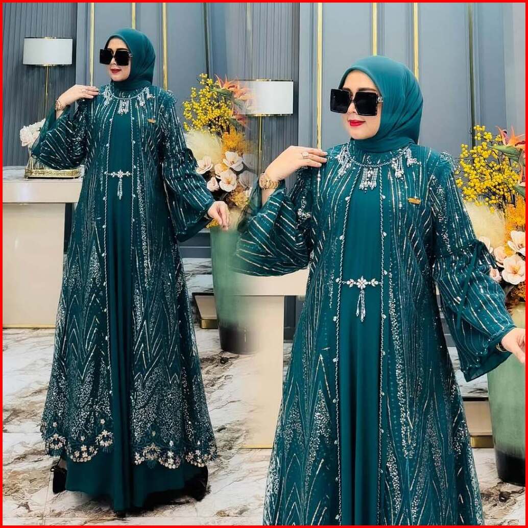 New Valentina Dress Maxy Kondangan Terbaru 2026 Mewah Kekinian Matt Ceruty Mix Spangle Aplikasi Payet Premium Gamis Pest