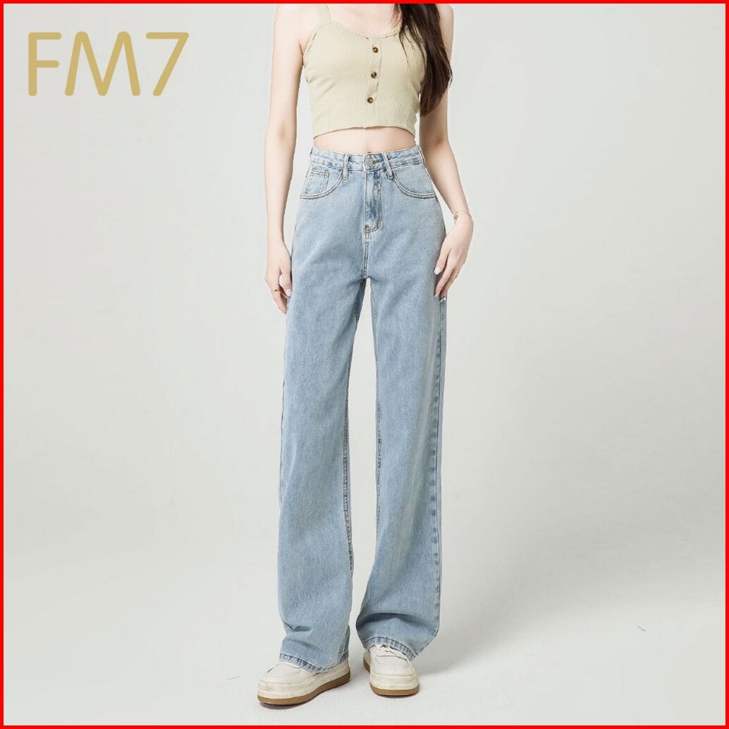 Fm7 L15 Korean High Waist Straight Bagy Jeans Denim Wanita - Biru