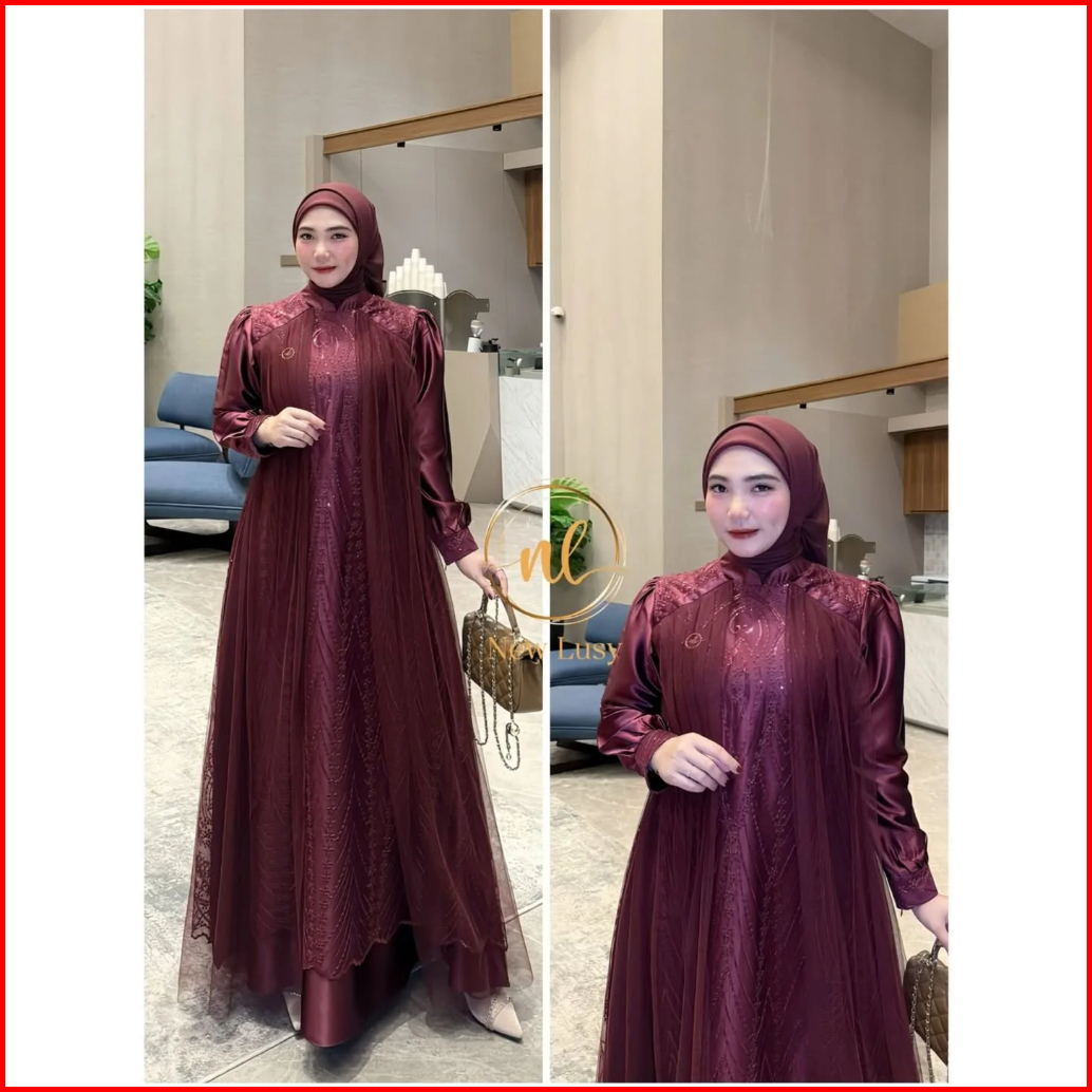 Gamis Brokat Tile Mewah Leya Dress Gamis 2026 Model Terbaru Lebaran Dress Kondangan Simple Elegan