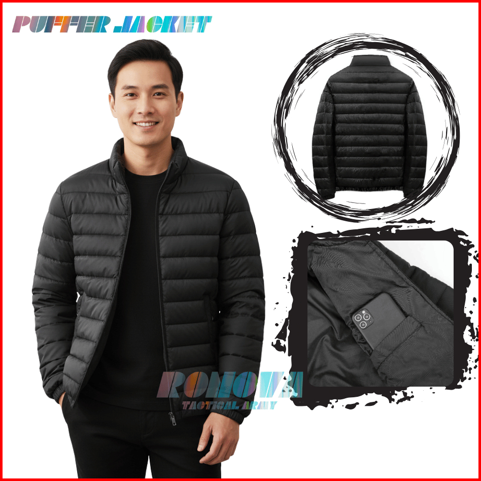 Ronova - Jaket Parasut Puffer Kerah Outdoor Waterproof Anti Angin Pria Wanita Jacket Parasut Pria