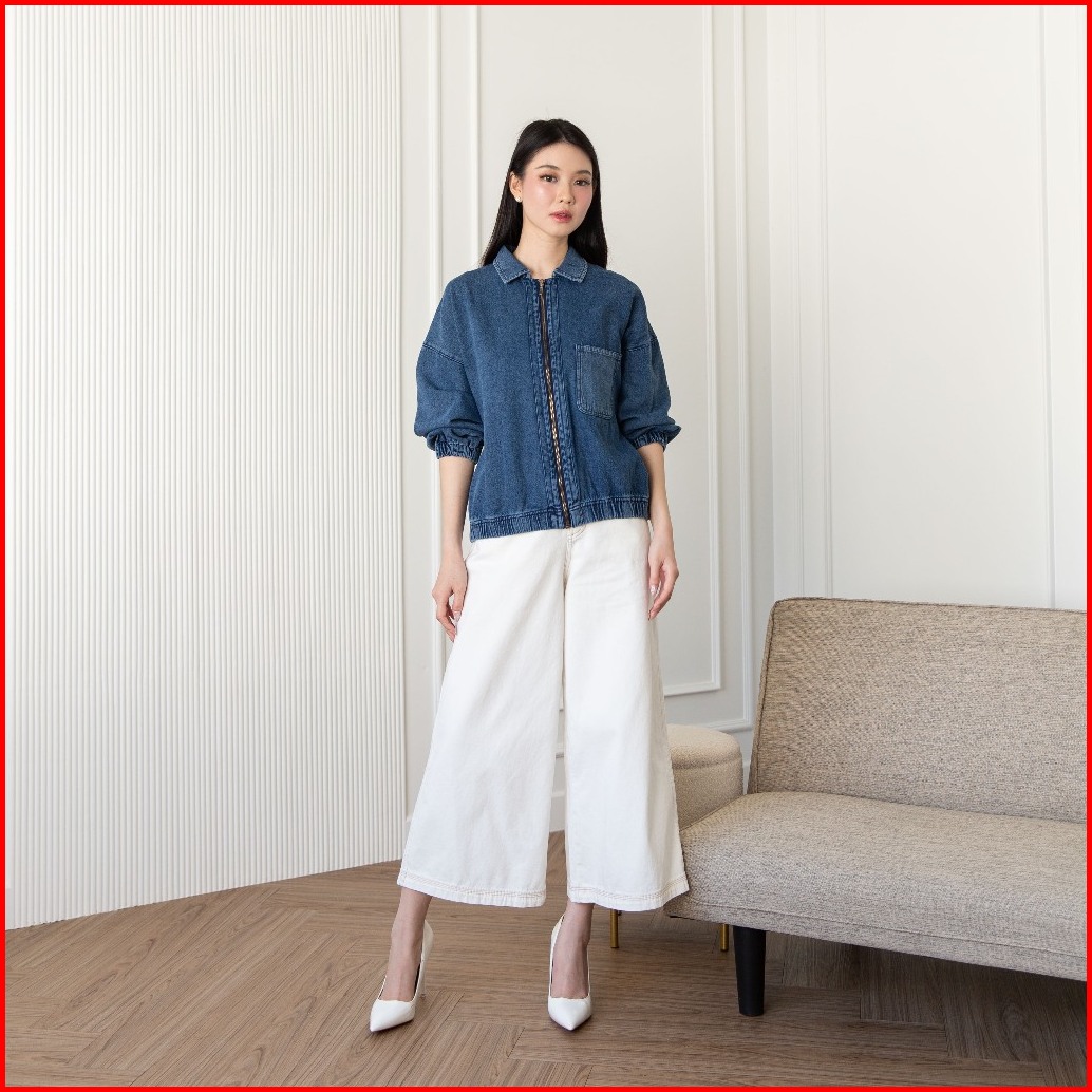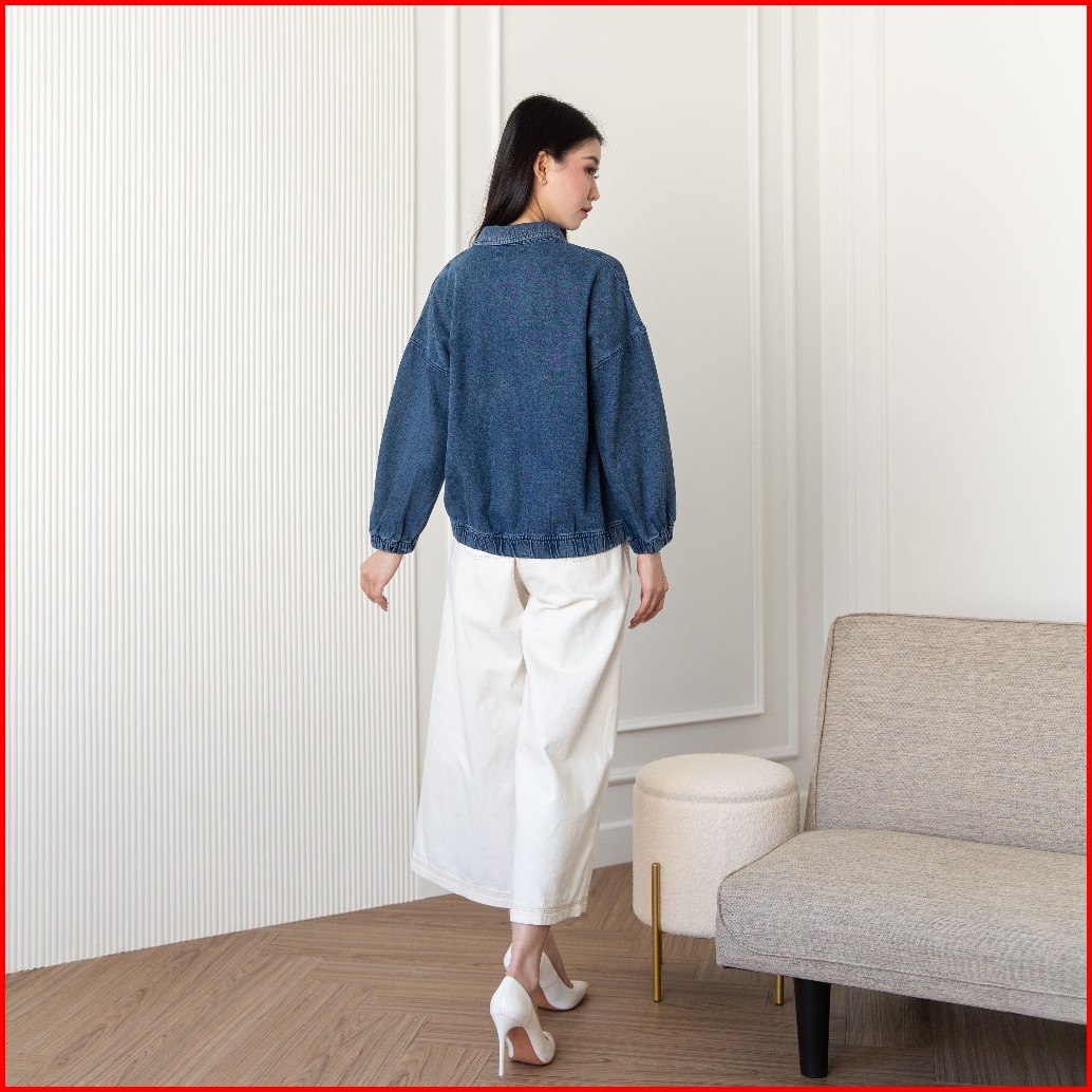 Come Jamie Denim Jacket 178 Med Blue - Jaket Outer Luaran Denim Wanita Kasual Office Work Wear Kantor