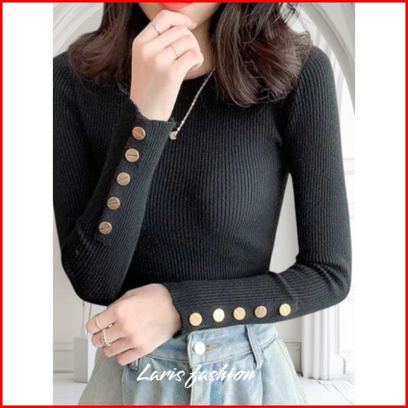 Terlaris Innara Blous Innara Kenit Innara Moderen Innara Kenit Kancing Manset Lengan Panjang
